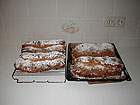 Gleich nach dem Backen bestreicht man den Stollen mit zerlassener Margarine und bestäubt ihn mit Puderzucker.