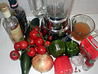 Gemüse putzen/entkernen und in grobe Würfel schneiden. Mit zerdrücktem Knoblauch portionsweise im Mixer pürieren. Dabei darauf achten, dass in jeder Portion jeweils ALLE Gemüsesorten enthalten sind. Am besten Tomaten und Gurken zuerst in den Mixer geben, dann "rückt" der Rest von alleine nach. Bei Bedarf etwas Gemüsebrühe dazugeben.