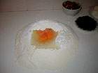 entsteinte in kleine Würfel geschnittene Mischobst. Man bedeckt die Früchte mit Mehl und verknetet von der Mitte her alle Zutaten schnell zu einem dicken Kloß aus glattem Teig. Sollte er kleben, gibt