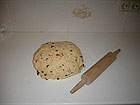 und mit einem Teil des Mehls zu einem dicklichen Brei verarbeitet. Darauf gibt man die in Stücke geschnittene kalte Margarine, den Quark, die gereinigten Rosinen und das gereinigte,