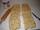 teilen und jedes Stück der Länge nach zur typischen Stollenform überklappen und auf ein gefettetes oder mit Backpapier ausgelegtes Backblech legen.
