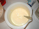 Speisestärke mit 3 El. Johannisbeernektar anrühren. Restlichen Nektar zum Kochen bringen, die angerührte Stärke dazu geben und 2-3 min aufkochen lassen.