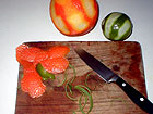 Mit dünnen Streifen abgeriebener Limetten- und Orangenschalen servieren