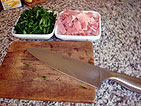 0,5-1cm breite Streifen schneiden. Blätter der Petersilie von den Stielen