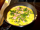der zweiten Seite nochmal 1 min braten. Dabei werden Schinken und Petersilie